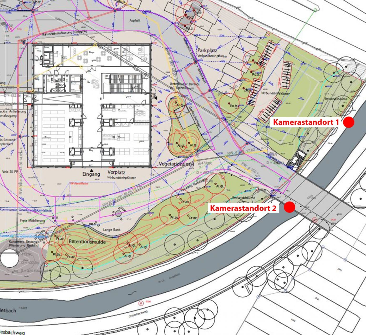 Kameras observieren den Wasserlauf des Chriesbachs